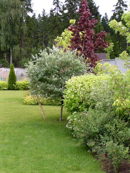 Посадка декоративных древесных и кустарниковыхПри создании садов или небольших участков сада в пейзажном (Английском) стиле используется групповая посадка лиственных и хвойных деревьев и кустарников. Разноуровневая группа создается с учетом темпов роста, формы и окраски кроны в разное время года отдельно взятых растений. Понятно, что лиственные и хвойные деревья растут гораздо медленнее, чем кустарники. Поэтому для того, чтобы такая группа выглядела красиво уже в первые годы после посадки, в пустые участки между деревьями или медленно растущими кустарниками сажают подходящие, достаточно высокие многолетние растения или быстрорастущие кустарники. По мере роста основных растений, их можно будет заменить или просто пересадить на другое место.