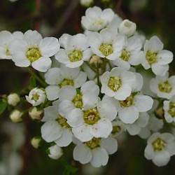 Цветет с середины мая до начала июня (при ранней весне). Родина этой спиреи – острова Японии. В ландшафте в Европе с 1882 года. В естественной среде – это кустарник высотой до 2 метров и с таким же диаметром кроны. Крупные щитковидные соцветия из белых цветков густо сидят на дугообразно изогнутых ветвях. Растения светолюбивы засухоустойчивы, часто подмерзают в суровые малоснежные зимы в нашей зоне.